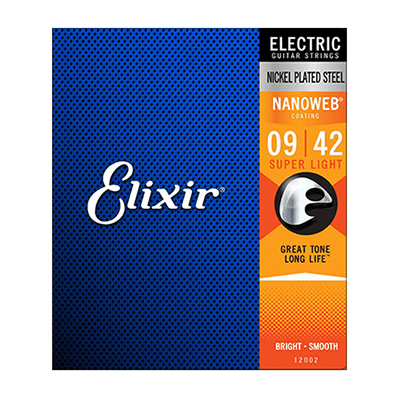 Elixir® Electric Nickel Plated Steel Strings with NANOWEB® Coating deliver the presence, punch, and personality of traditional electric guitar strings but with extended tone life.
