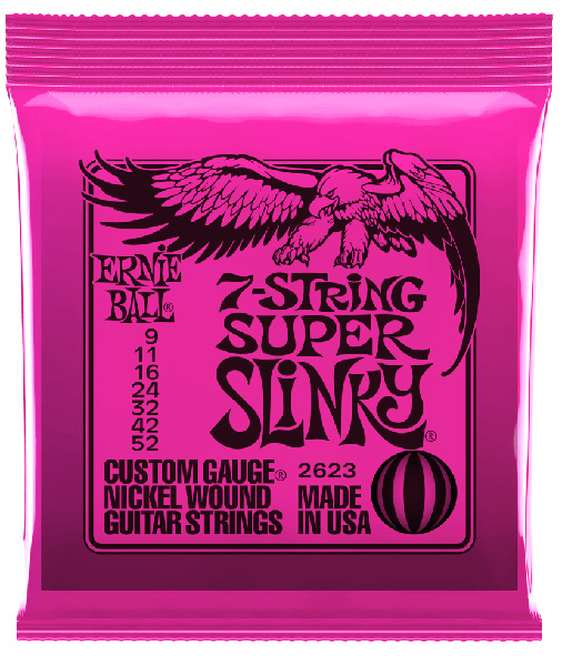 Ernie Ball 2623 Super Slinky Electric Guitar Strings involve wrapping nickel-plated steel wire around a durable hex-shaped steel core. High-carbon steel of exceptional quality goes into making the plain strings, which offer smooth, balanced tones. These strings produce quick playability together with high brightness, which suits all guitarists seeking responsive comfort in their instrument. Gauges .009, .011, .016, .024w, .032, .042, .052