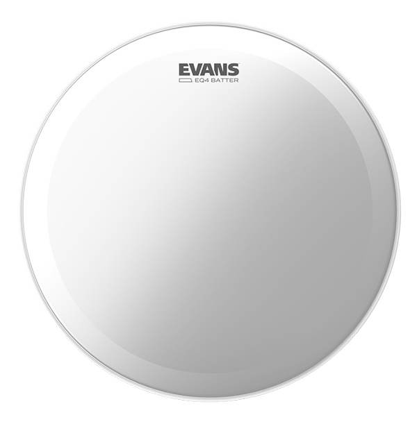 Evans EQ4 series features a single ply of 10mil film. A fixed 10 mil internal overtone control ring focuses the tonal response of the drum. The frosted surface provides a warmer tone.