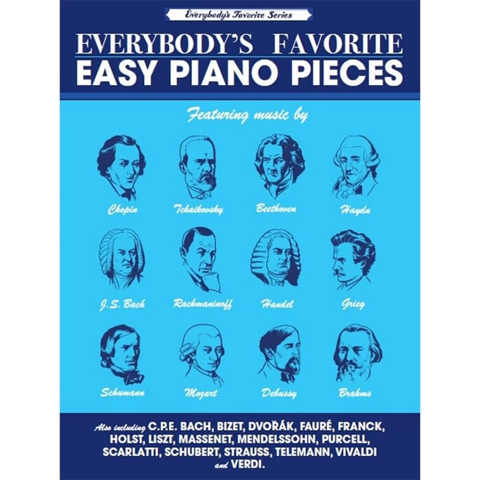 Everybody’s Favorite Easy Piano Pieces includes 55 famous classical works arranged for easy piano, featuring pieces by Bach, Beethoven, and Debussy, plus composer biographies for added learning.