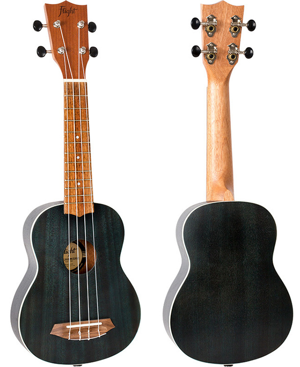 The Topaz on Flight NUS380 is constructed of laminated Sapele. Sapele is a light hardwood with a golden to the dark reddish-brown hue that originates from tropical Africa. After that, we added a lovely finish to create a unique and eye-catching appearance. Its grain is interlocked, has a homogeneous texture, and has an excellent natural shine. It is a close relative of mahogany. The arched back of this ukulele amplifies and concentrates its natural resonance, producing a crystal clear and bright tone. All of our ukuleles include hand-drawn and laser-etched rosettes.