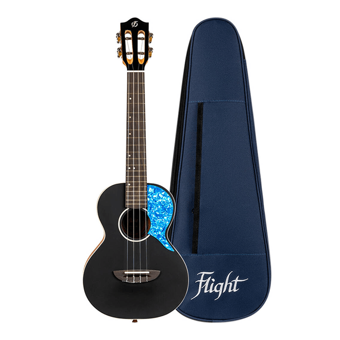 The Flight Iris Tenor Ukulele combines bold style with great sound. It has a solid spruce top for bright tone and a mahogany body for warmth and strength. Rosewood on the bridge and fretboard makes it smooth to play. It features fluorocarbon strings, reliable Der Jung tuners, and eye-catching white binding and rosette. Offset fret markers and a satin black finish add a modern touch. It also comes with a padded gig bag for easy carrying and protection.
