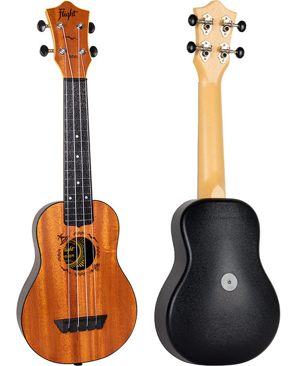 The laminate mahogany top of the Flight TUS53 Mahogany Soprano Travel Ukulele will adapt to any playing style and add a traditional "look". Mahogany is the traditional favorite of ukulele luthiers all around the world. It is the king of tonewoods because it is powerful and rich in tone and loudness.
