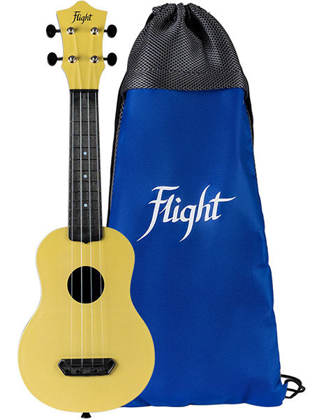 The Flight Sand Ultra Travel Ukulele is a soprano travel ukulele made of polycarbonate-reinforced plastic with fluorocarbon strings that produce a punchy and bright sound. It also has a thin, responsive, lattice-braced soundboard. The instrument has a zero fret, precision engineering, and optimum action and intonation for a fun playing experience. The slotted bridge makes changing the strings simple.