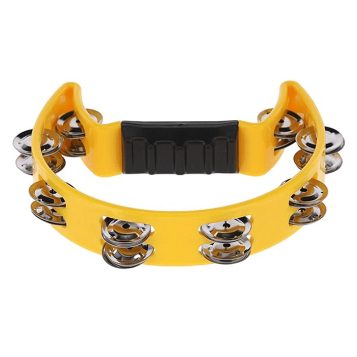 The Gewa Half Moon Tambourine Yellow features 16 pairs of chrome-plated jingles arranged in double rows for a bright, clear sound. Its half-moon shape and synthetic frame make it lightweight and durable. The center grip is made of soft plastic for a comfortable, secure hold during play.