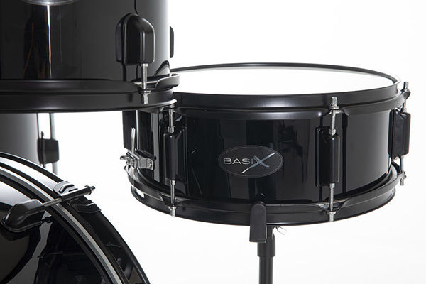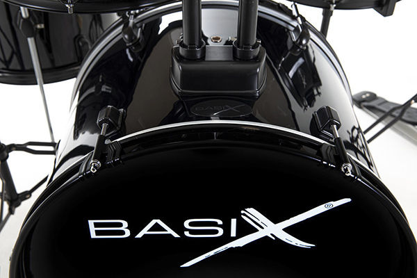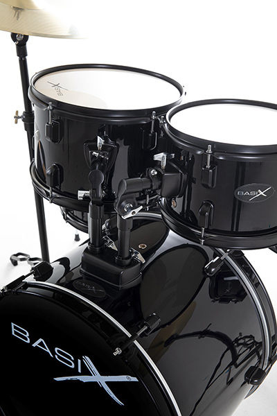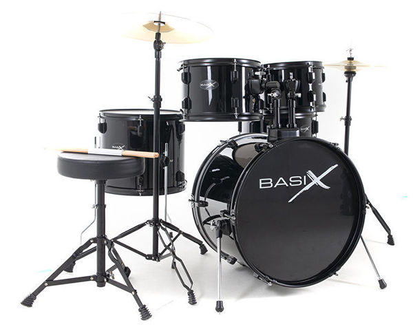 A complete drum set for beginners, the Gewa Basix Dynamic Drum Kit comes with Poplar Body Black 5-Piece Hardware Pack, Case, Strap, and Stand.