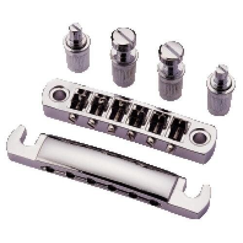 Complete Tune-o-matic bridge and tailpiece, 10.5mm string distance, adjustable height screws in turning bolt.
