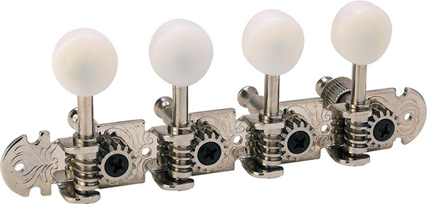 GM Mando STD Nickel 4-IN-L BIN 62 represents a dependable nickel-plated set of mandolin tuning machines. The GM Mando STD Nickel 4-IN-L BIN 62 provides long-term dependable performance through its smooth adjustment capabilities. The product includes screws for simple mounting procedures. The GM Mando STD Nickel 4-IN-L BIN 62 serves well as an upgrade or substitute for an existing worn-out tuning machine.