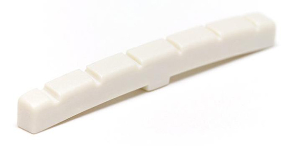 The PQ-5000-L0 is a perfect option to replace and upgrade the nut in almost all Fender style Left-Handed electric guitars. It will work in both a flat bottom or curved bottom nut slot due to its ingenious design, just sand off the tab for a curved bottom.