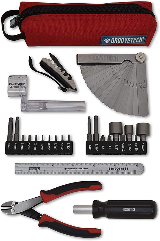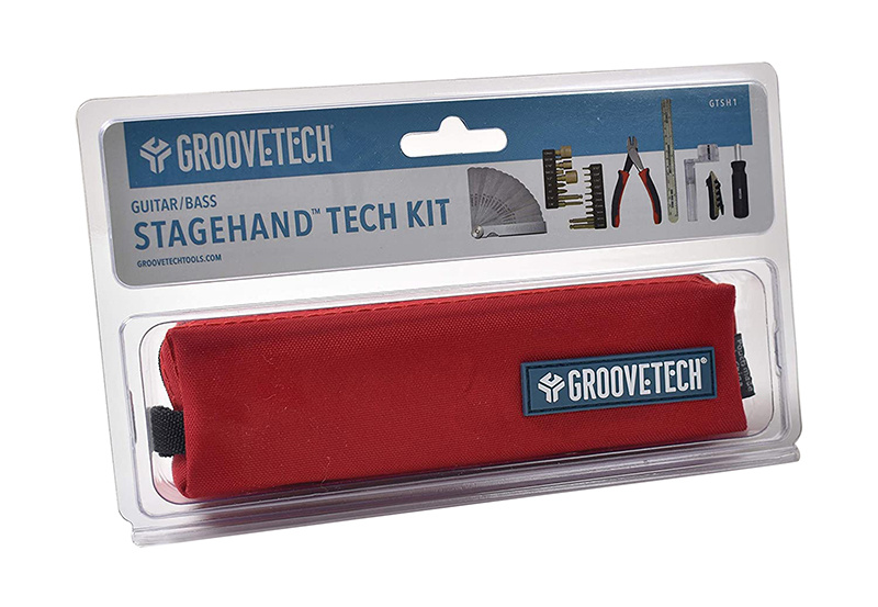 19-piece magnetic bit set and screwdriver-style bit holder, with both inch and metric hex wrenches, screwdrivers, and sockets to handle virtually any make and model of guitar or bass