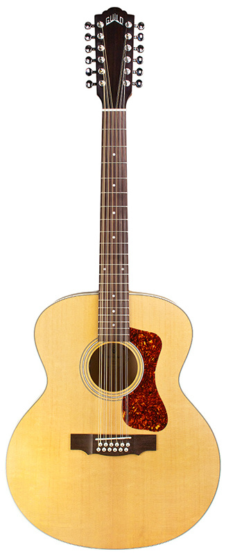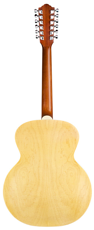 The F-2512E Maple combines two of Guild’s most iconic specialties: twelve string and jumbo guitars. With their large, rounded bodies, jumbo acoustic guitars have been Guild’s forte since 1954; combining this shape with the ever-popular 12-string construction results in a full-toned, impressively voiced acoustic instrument. Built with a solid spruce top, maple sides, and arched maple back, the F-2512E Maple has the bright, jangly tone characteristic of Guild’s twelve string guitars. Guild’s signature arched back design allows for great volume and projection, long sustain, and a lush, full sound.