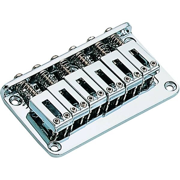 Fixed bridge, strings through body. Includes fixing screws and an Allen key for adjusting saddle height.