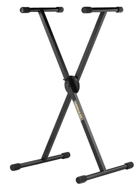 The HERCULES Single X Keyboard Stand KS110B features the patented EZ-LOK, 5 height settings, and heavy duty steel construction.
