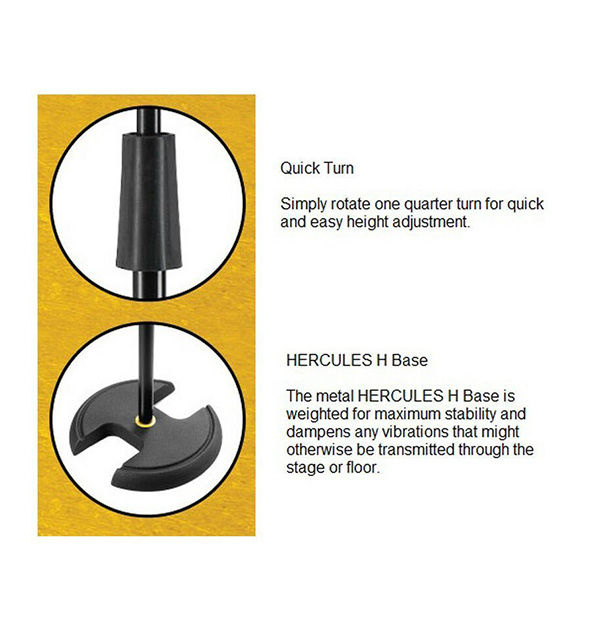 The Hercules MB202B Mic Boom Stand Separate Base provides reliable performance with quick height adjustments from 93 to 168 cm using its Quick Turn clutch. The weighted H Base ensures stability without taking up much space. Built from durable, lightweight materials, this two-part stand is easy to transport and assemble.