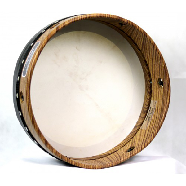 The tuning mechanism is hand adjustable and integrated into the frame, making it light and finished in Shesham wood. The skin is a professional goat skin of AA quality with tone damper tape wrapped around the perimeter and skin to reduce spillage and provide a deep, clear tone.