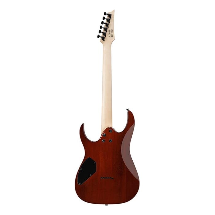 The Ibanez GRGR221PA-AQB Gio RG Series Electric Guitar in Aqua Burst offers style, comfort, and tone at an affordable price. It features an Okoume body with a Poplar Burl top for a balanced sound and stunning look. The GRG Maple neck with a Purpleheart fretboard and Sharktooth inlays ensures smooth playability across 24 frets. Dual IBZ-6 humbuckers deliver powerful tone with clear highs and deep lows, perfect for rock and metal. The F106 bridge provides stable tuning and sustain, while the black hardware gives it a sleek finish.