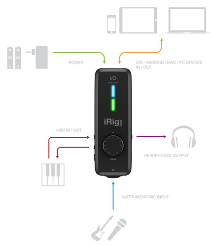 iRig Pro I/O is the next generation of the iRig Pro — the first mobile interface for connecting all of your studio gear to your iPhone, iPad, Mac, PC, or Android device to play and record on the go.