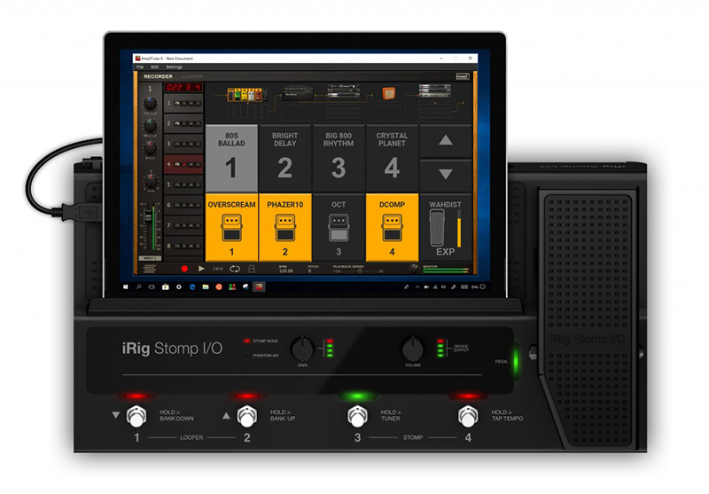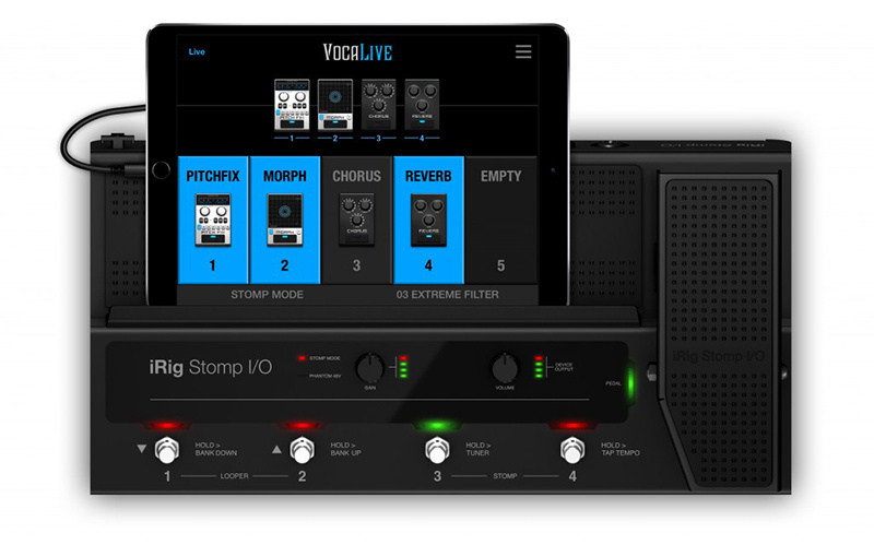 iRig Stomp I/O is a brand new type of USB pedalboard controller that integrates a professional, high-resolution, MFi certified audio interface with MIDI input/output for iPhone, iPad, Mac and PC.