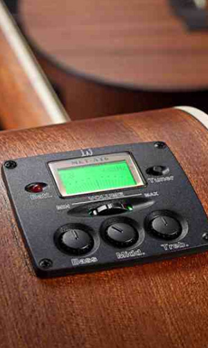 - - A16 equaliser with built in chromatic tuner, volume, bass, middle and treble control and low battery indicator