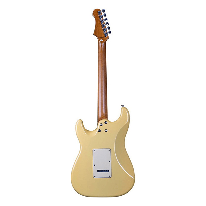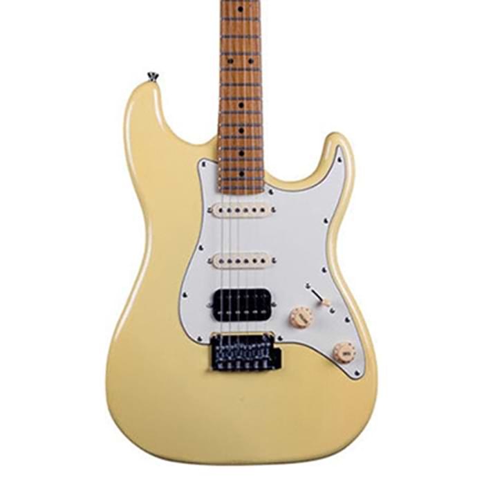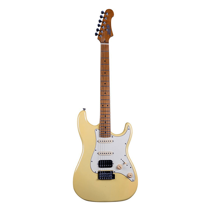 The Jet JS400 Vintage Yellow presents a contemporary design that combines comfort with a stylish appearance and premium playing capabilities. This guitar comes with a Canadian roasted maple neck that includes a modern C shape for providing smooth, fast playability. The 9.5" radius lets them execute chords effortlessly and flex their strings without effort. The JS400 receives its chrome hardware finishing, which provides reliable string tuning quality together with a refined appearance.