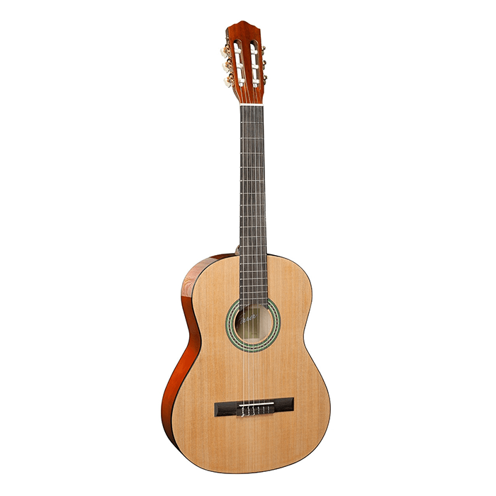 The Jose Ferrer Estudiante 1/2 serves beginners ideally by design because teachers specifically crafted it as their first choice. Students find learning easier because this guitar features a durable laminate body structure combined with a comfortable neck design. New beginner players and thoughtful students can benefit from this guitar that produces harmonious sounds while maintaining player comfort in creating music.