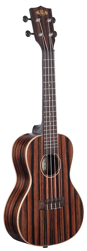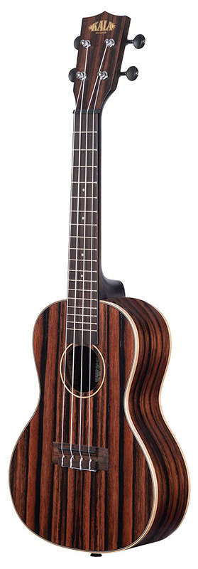 The Ebony line has a deep brown body with reddish-brown striping, finished in satin for a natural look. The light colored Maple rosette and binding creates a nice contrast to the Ebony body.