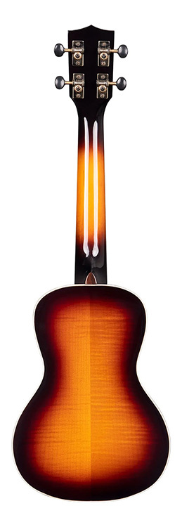 Gloss Flame Maple ukuleles include a warm red Cherry Burst that fades from the edges into a golden center or an earthy brown Tobacco Burst that does the same. The glossy, gloss finish and white binding highlight the wood's iridescent striped pattern. These stunning instruments have superb note separation, a clean, transparent tone, and adequate projection in addition to their stunning aesthetics. both concert and tenor models are offered.