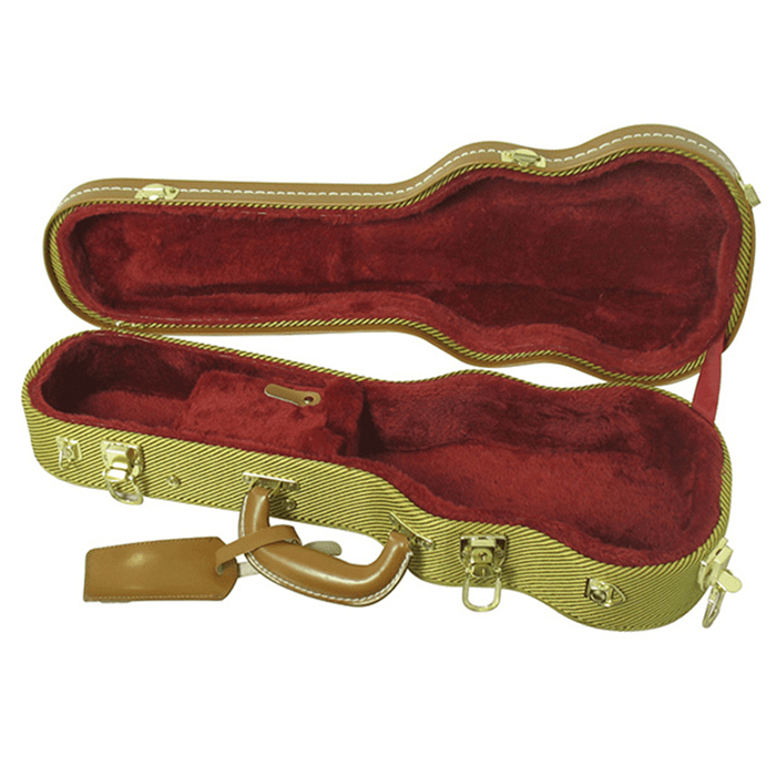 The Kala TC-S Ukulele Case is a traditional tweed hard case designed specifically for soprano ukuleles, offering superior protection for your instrument. Built with heavy-duty gold hardware and secure locks, this case ensures your ukulele stays safe during travel. The plush velour interior adds an extra layer of cushioning to safeguard your ukulele from bumps and knocks.
