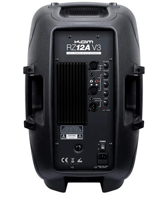Kam RZ12A V3 Bluetooth, 1000w peak / 250w continuous/RMS active speaker with Bluetooth™, USB, SD card, stereo line & mic inputs.