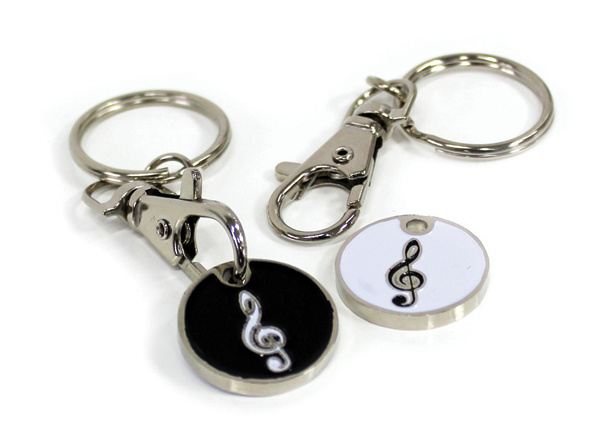 A Treble Clef trolley coin token keyring. Ideal for swimming, golf, the gym or just simply shopping.