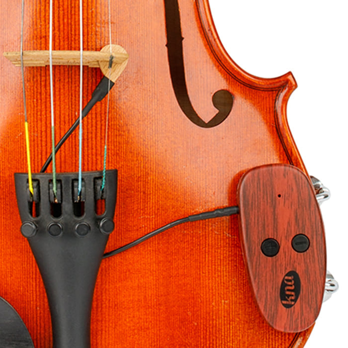 The KNA Portable Violin/Viola Wireless 2.4 GHz UHF Piezo Pickup gives players clear tone and full mobility. The UHF transmitter offers a stable wireless signal, and you can switch to a wired connection when needed. Padded clamps protect the instrument while keeping the pickup secure. The wooden piezo sensor captures a natural sound, and the onboard buttons make level control easy. The system fits both violins and violas, and the USB C port provides fast charging.