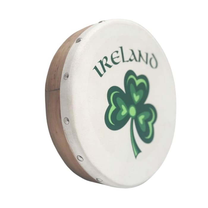 The Koda Bodhran 8”x1 1⁄2” Natural - Shamrock Ireland with Beater is a small traditional Irish drum designed for children and beginners. It features a strong wooden frame and a real goatskin drum head that produces warm natural sound. A crossbar inside the drum provides support and a comfortable grip while playing. The included beater allows players to learn simple Irish rhythm patterns right away. Its compact and lightweight size makes it easy for young players to hold and play. This bodhran is also a great decorative piece that celebrates Irish music and culture.