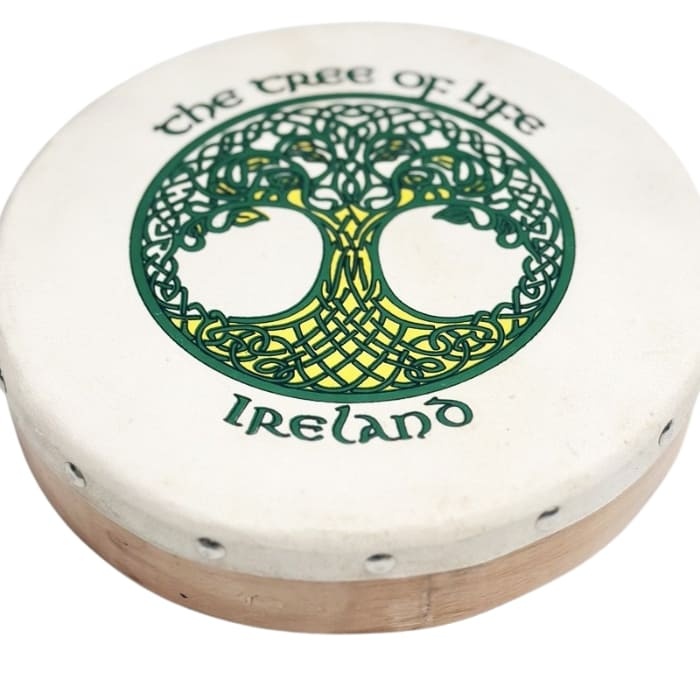 The Koda Bodhran 8”x1 1⁄2” Natural - Tree of Life with Beater is a small traditional Irish drum designed for children and beginners. It features a strong wooden frame and a real goatskin drum head that produces warm natural sound. A crossbar inside the drum provides support and helps players hold the instrument comfortably. The included beater allows simple rhythm playing often used in Irish music. Its lightweight size makes it easy for young players to use. The Tree of Life design also makes it a beautiful decorative piece that represents Celtic culture.