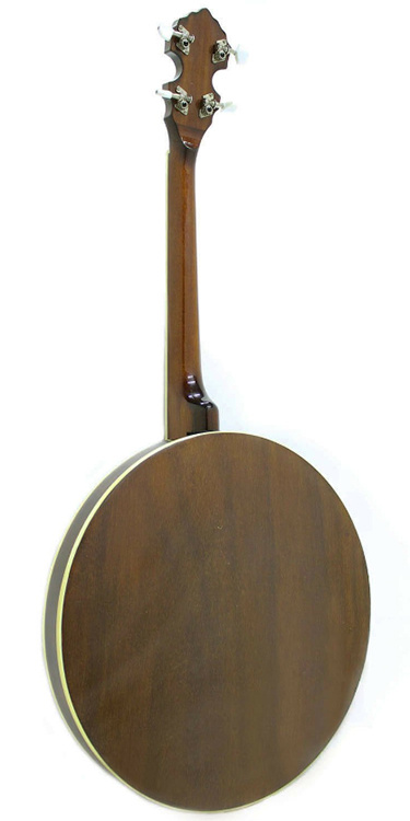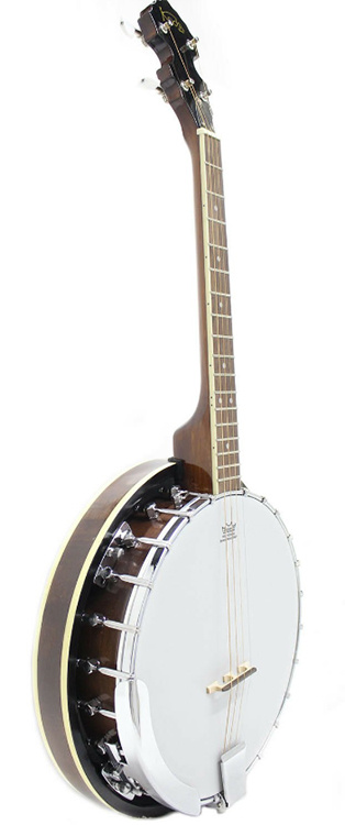 The Koda 4 string banjo has a mahogany neck and resonator, a rosewood fingerboard with dot inlays, a 17-fret, 24-bracket tenor banjo, and open guitar-style tuners with pearloid buttons.