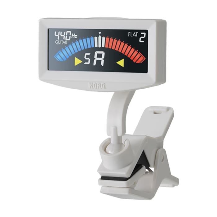 The Korg Pitchcrow Clip-On Tuner White is a small and easy to use tuner that clips onto your instrument. It has a bright color screen that clearly shows if your note is in tune. With special modes for guitar and bass, plus very precise tuning up to ±0.1 cents, it helps your instrument sound clean and balanced. The battery lasts up to 24 hours. Great for beginners and regular practice.