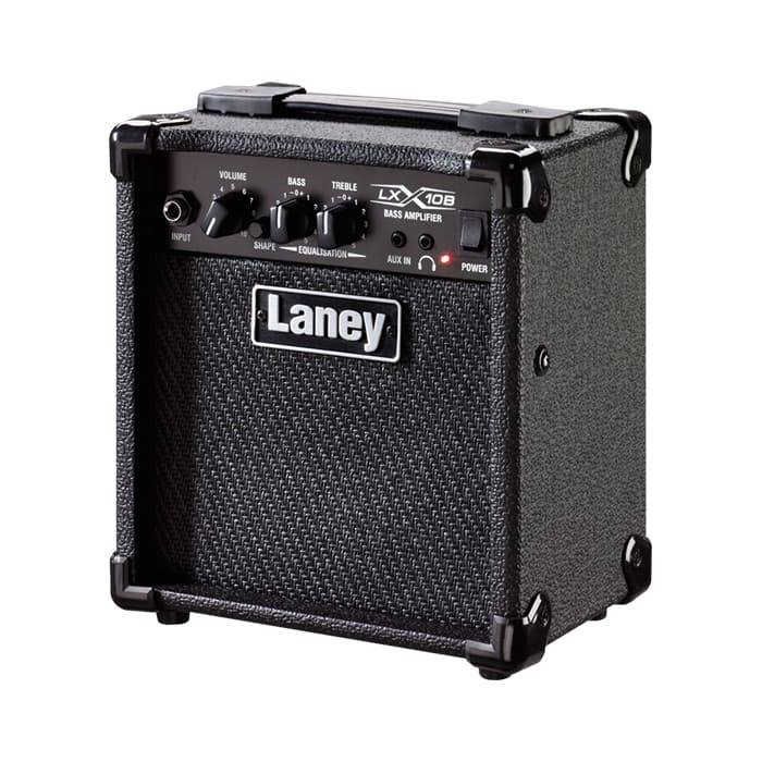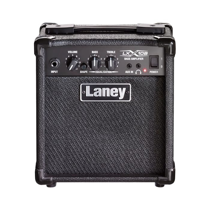 The Laney LX10B Bass Combo Amp Black features 10 watts of power, a 2-band EQ, and a Shape switch for great tone control. It includes an Aux input for playback and a headphone socket for silent practice.