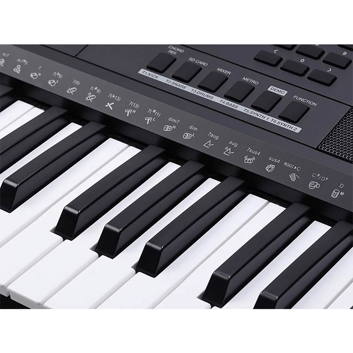The Medeli Keyboard, 61 Touch Sensitive Keys, 2 x 15 Watt combines expressive touch response, 600 voices, and 200 styles with powerful built-in speakers. It includes USB-MIDI/audio, microphone input, SD card slot, and a Music Tutorial System, making it ideal for both practice and performance.