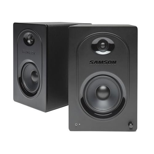 The Samson MediaOne M50 Powered Studio Monitors are perfect for all your desktop and multimedia needs. With a built-in amplifier and sturdy wood design, these monitors provide powerful, clear sound for watching videos, making music, listening to music, or gaming.
