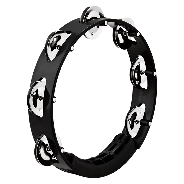 The Meinl Black Tour Tambourine 8" Steel 1 Row MPHTT8BK is designed for musicians who require performance and durability on the road. Its extra-wide grip and sturdy ABS plastic frame give it a bright, cutting sound that stands out. With its stainless steel jingles that produce clear, crisp tones.