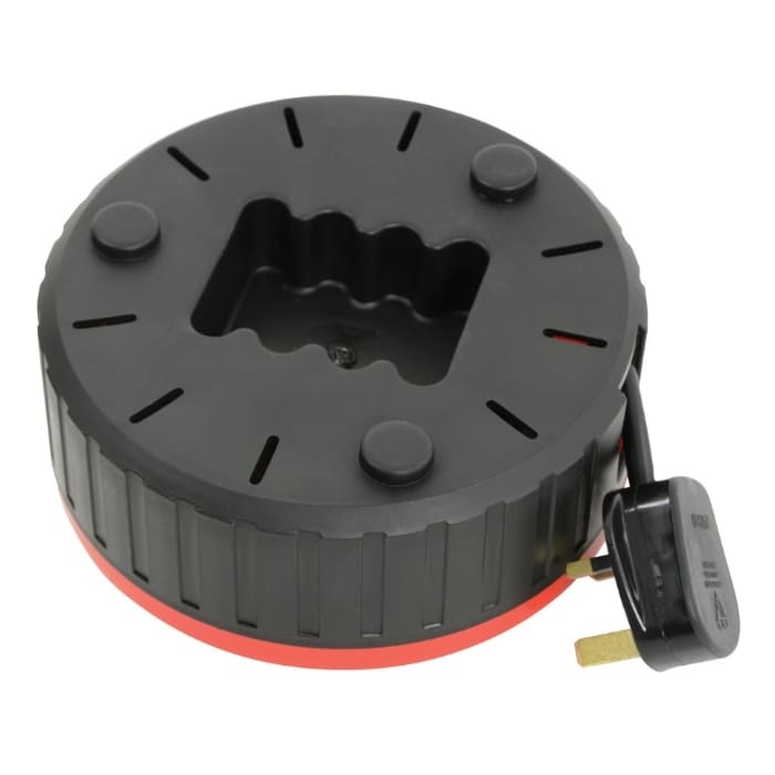 The Mercury 4 Gang 5M Extension Reel With Thermal Cut Out is designed for safe and simple power distribution. It has four mains sockets and a 5 meter cable stored inside an enclosed drum. The built in thermal cut out helps prevent overload. A 13A fused plug and copper cables provide reliable power. The carry handle and winding knob make it easy to move and store after use.