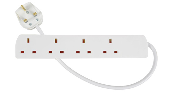 A mains extension lead with 4 UK sockets 13A max. current rating.