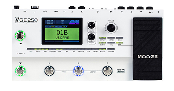 The GE250 offers many of the same features expected from a GE multi-effects unit such as 70 digital amp models, over 180 different effects, customizable effects chain, drum machine, metronome, 70-second looper, and easily customizable and storable presets. It even borrows some features from the GE300 such as Tone Capture to create your own digital amp models. MIDI IN/OUT, easy FX LOOP integration and low-latency USB audio support make it suitable for live performance or recording directly to a PC.