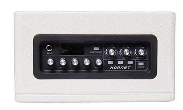 MOOER Hornet White is a small desktop style amplifier with fresh design, intuitive control. With 9 different types of amp modes, Hornet White allows you to play with your guitar, bass guitar or even acoustic guitar to approach your favorite tone. In addition, the built-in 9 effects allow you to plug-in and play without any other complicating pedalboard. Bluetooth and AUX in function allow play music from your MP3 device, headphone output helps silent bedroom practice.