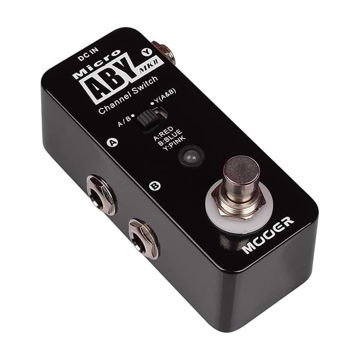The Mooer Micro ABY MK2 Switch Pedal is a compact and durable tool for flexible signal routing. It lets you send one signal to two outputs or combine two inputs into one, ideal for guitars, amps, and pedalboards. You can switch between A/B or A+B modes for full control. It works without power, though LEDs need a 9V adapter. With a solid metal build and true bypass, it delivers clean tone and reliable performance in any setup.