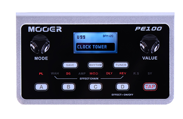 MOOER has entered into the realm of portable multi-effects processors. The PE100 is a pocket-sized, desktop unit that contains everything the guitarist needs tightly wrapped up within a small sleek shell. A full range of amp models, a myriad of effects and stompboxes, a precision tuner, drum patterns, and metronomes.