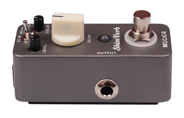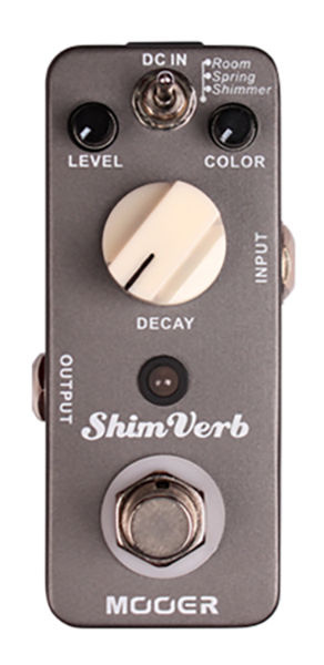 Three different reverb settings are available on this intriguing little pedal: Room, Spring, and Shimmer. Room produces a realistic acoustic reverb from room to hall; Spring creates a classic surf rock vibe; and Shimmer is a rich, velvety overtone reverb that suits alternative music well.