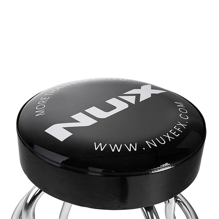 The NUX Bar Stool is a comfortable and stylish seating option designed for musicians and home setups. It features a padded black seat that provides support during long practice sessions. The chrome legs offer strong and stable support, making it reliable for daily use. The clean design with the NUX logo adds a professional touch to any music room or studio.