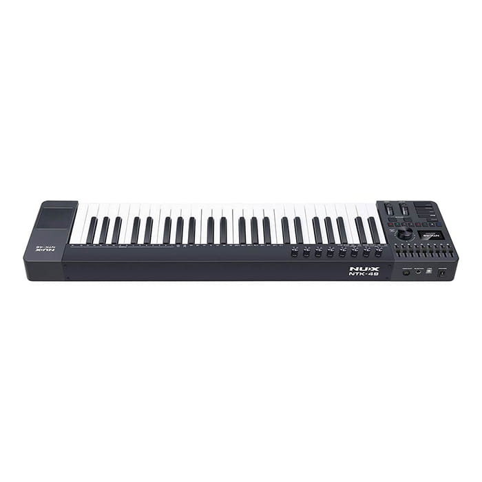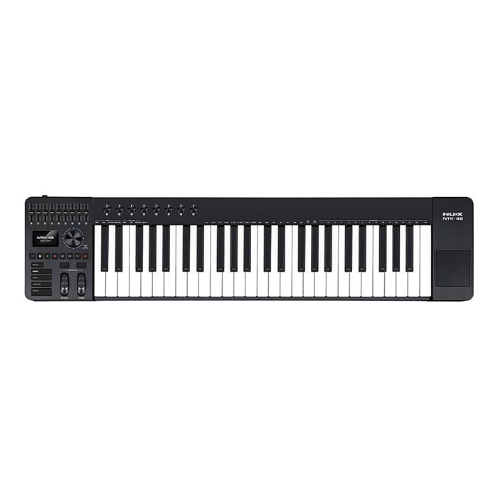 The NUX MIDI Keyboard Controller 49 Keys is made for people who want to create music on a computer. It has 49 keys that feel natural to play and help you learn control and expression. You can use the knobs and faders to adjust your sound while you play. It also has tools like an arpeggiator and smart scales to help you create melodies easily. The touchpad lets you control your music software without using a mouse. It connects with USB, so it is quick to set up.