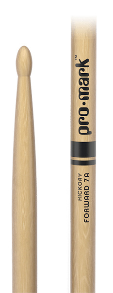 The ProMark Classic Forward 7A drumstick features an oval tip and short taper, providing a forward-weighted feel for extra power and control.