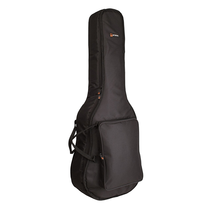Protec Dreadnought Guitar Bag, Silver Series. Your instrument receives complete protection from everyday hits and scrapes through the professional 600D nylon shell and 10mm robust padding of this bag. The gentle nylex interior section provides additional protection, and the instrument receives reinforcement at crucial points, including the headstock, bridge, and end pin. The bag was made for easy transportation with its backpack straps along with an ample front compartment for additional gear.